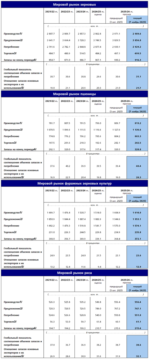 С более подробным анализом рынков зерновых можно ознакомиться в публикации "Продовольственный прогноз", которая будет представлена 13 ноября 2025 года.